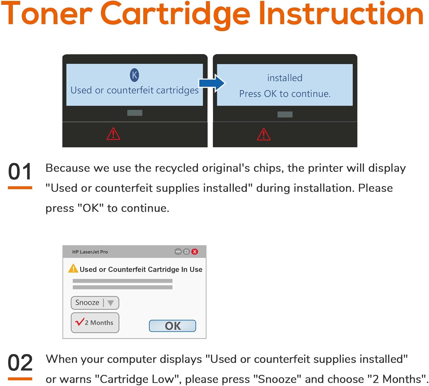 • Our CF258a toner cartridge include the original recycling chip, so there's no need for manual chip transfer. Get stable print quality and better toner efficiency right away.