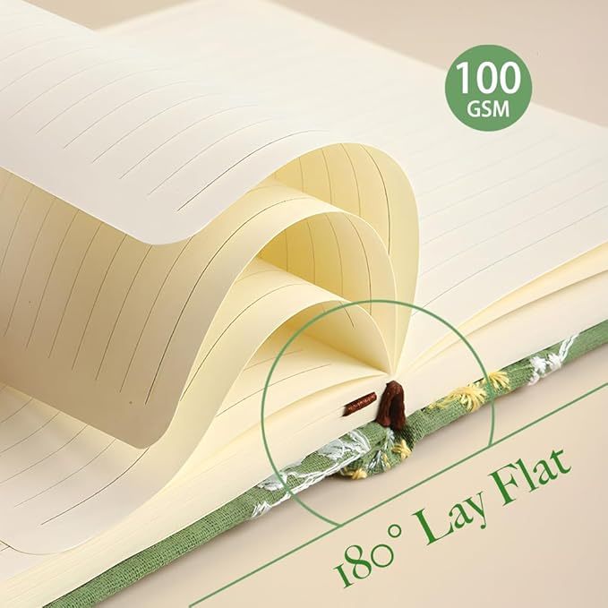 • Hardcover and Lay-Flat: this hardcover notebook has durable and tough cover, can withstand a reverse opening of 360°,lay-flat binding providing a seamless writing surface from edge to edge.