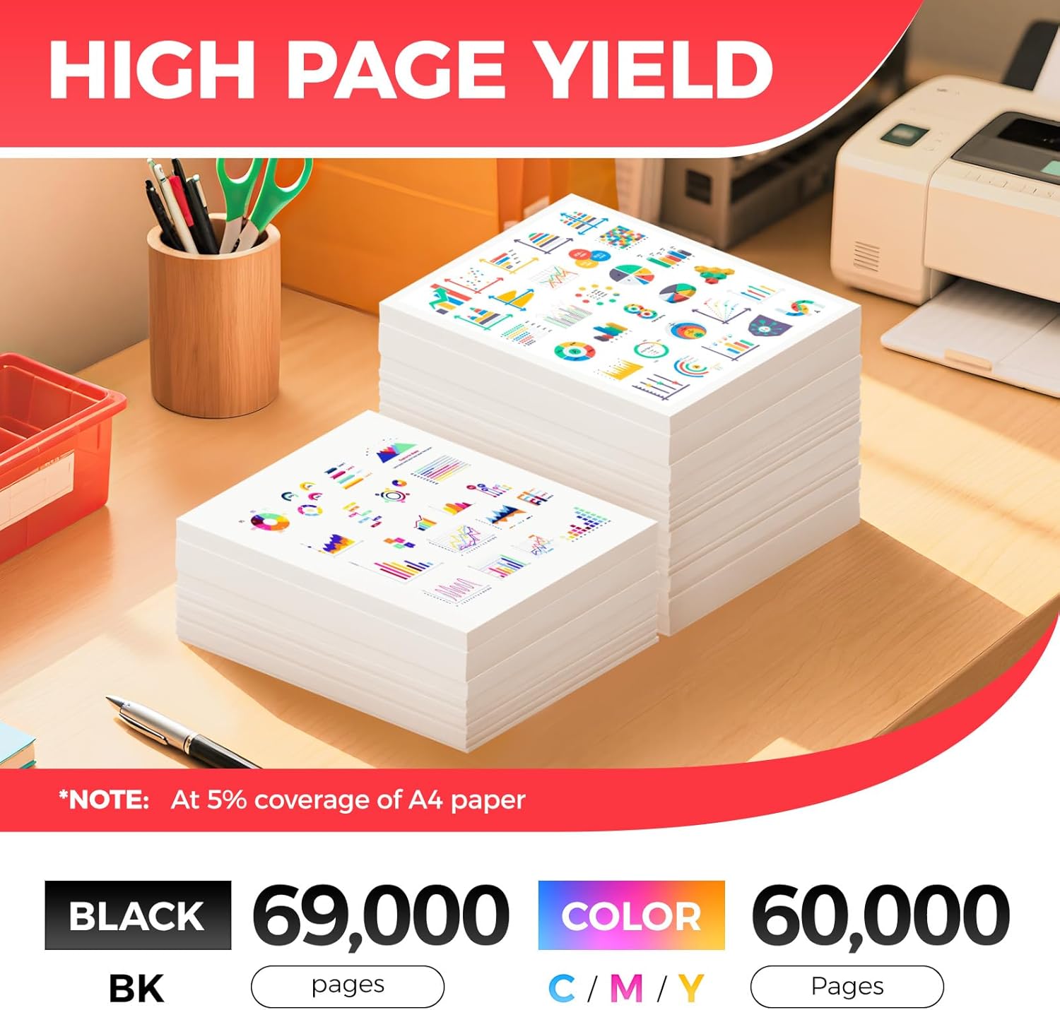 • High-Yield: up to 28,000‬ pages per GPR-55 Black and 25,500 pages per GPR-55 Color (Total 104,500 pages, A4 5% Coverage),with High Yield Version GPR55 GPR-55 toner Cartridges.
