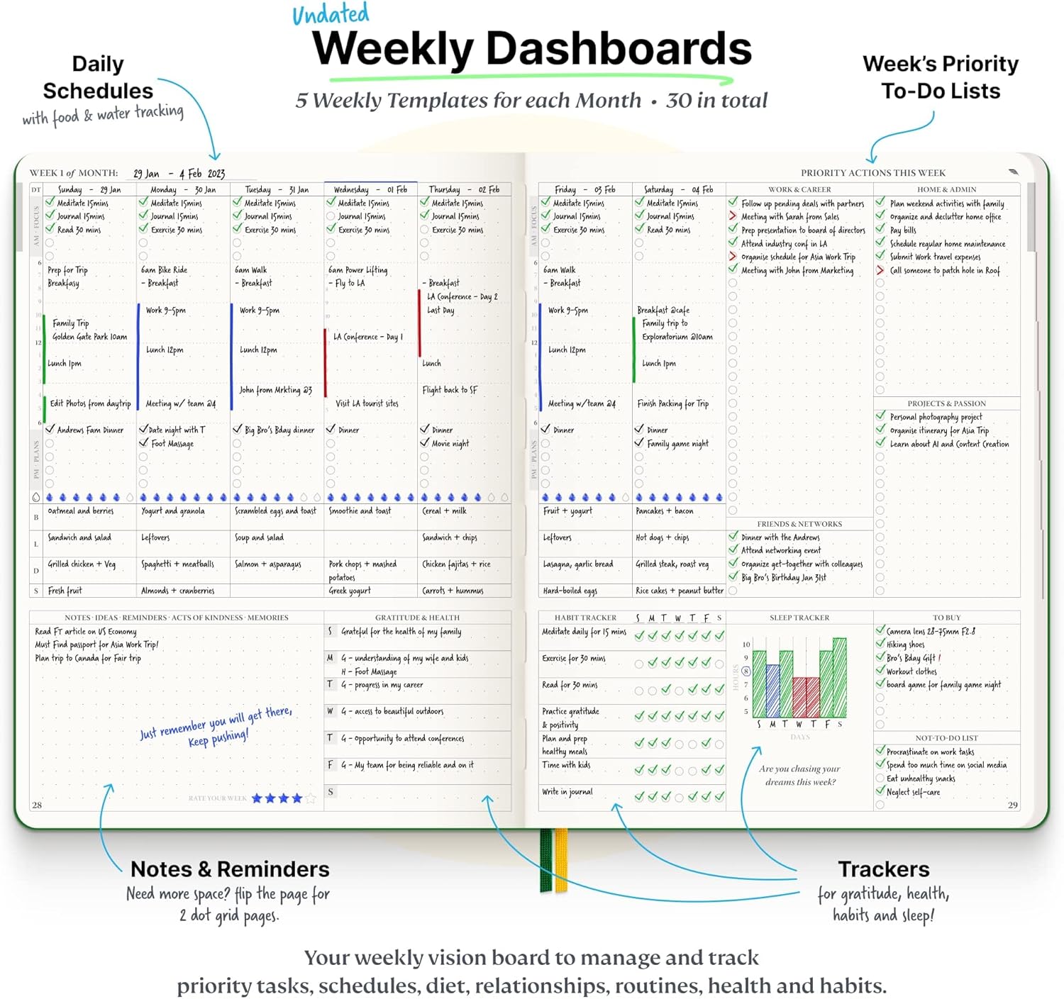 Roterunner 2025 B5 Pink Softcover Purpose Planner Notebook 7.5'x9.8' Undated Planner Daily Weekly Monthly Productivity Goal Setting Tool for Work Home ADHD Adults Self Care Journal