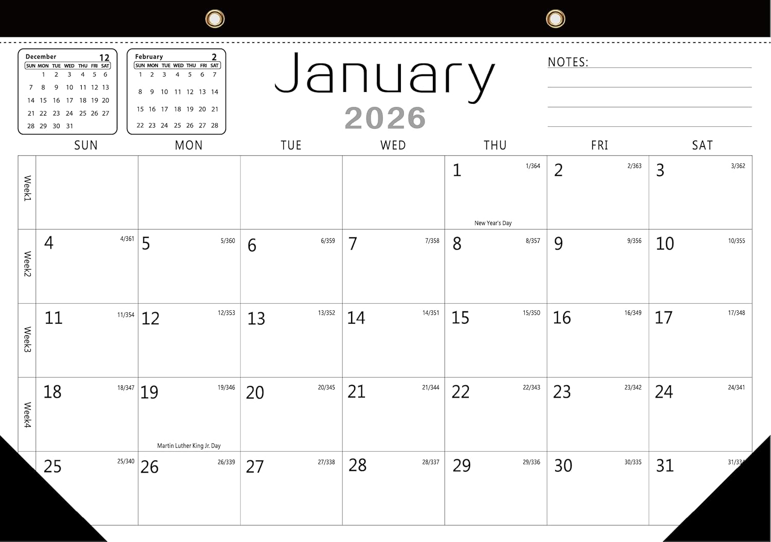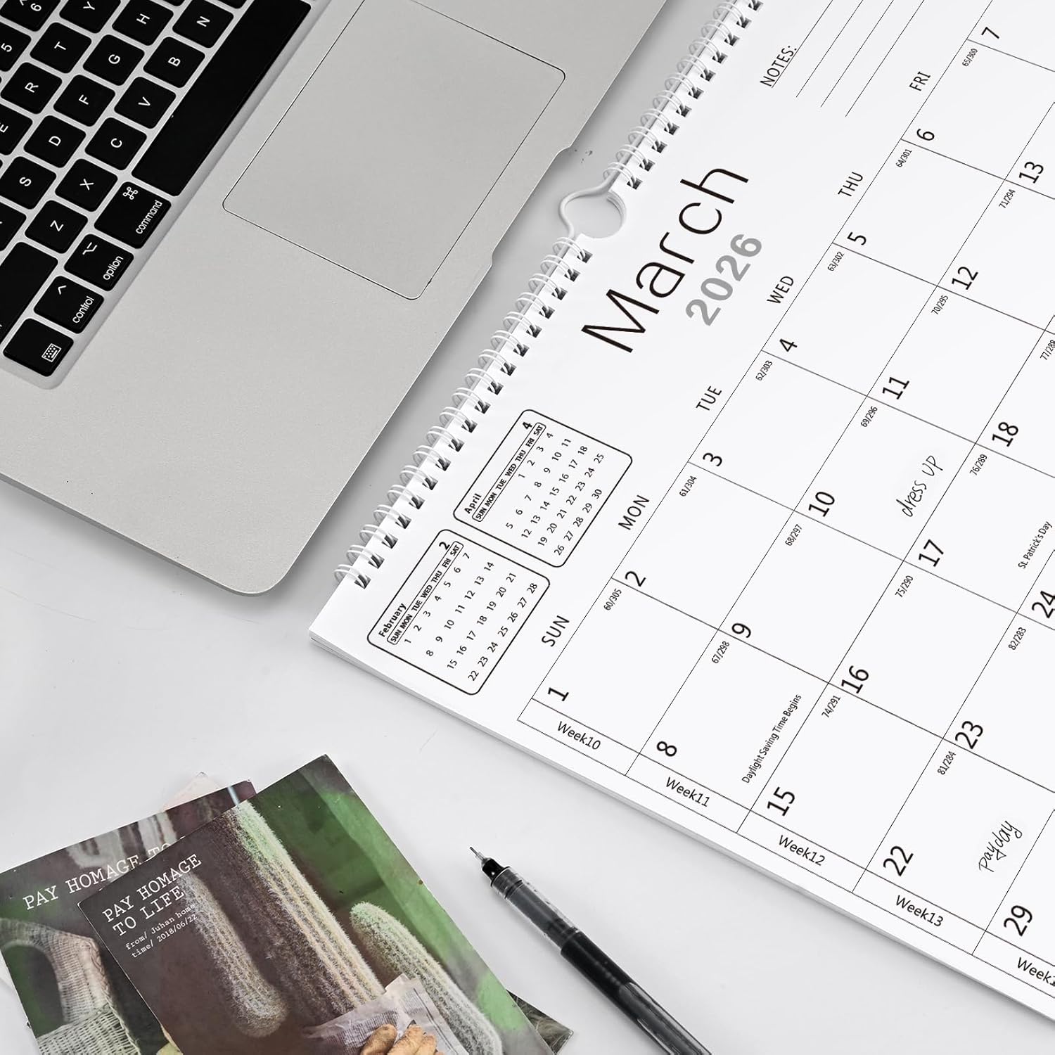 • 【18 Months Wall Calendar】:2026-2027 Wall Calendars from Jan. 2026-Jun. 2027,the calendar helps to track your daily tasks and long-term goals. calendar:12"×17". extra adding 6 monthly pages, Full year reference calendars are shown on each page for quick date checking and future planning, perfect to track your daily tasks, long-term goals & academic year planning.