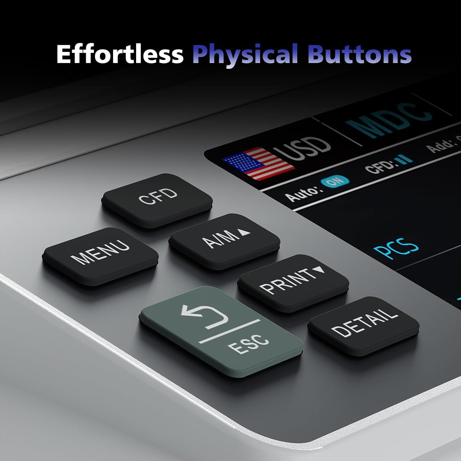 • 【Flexible Counting Modes】The N71 Mixed Denomination Money Counter supports various counting modes, including mixed denomination, single denomination, total count, batch, and accumulation. This money counting machine ensures fast and accurate cash counting for different denominations of the same currency(USD, CAD, MXN, EUR, GBP, etc.).