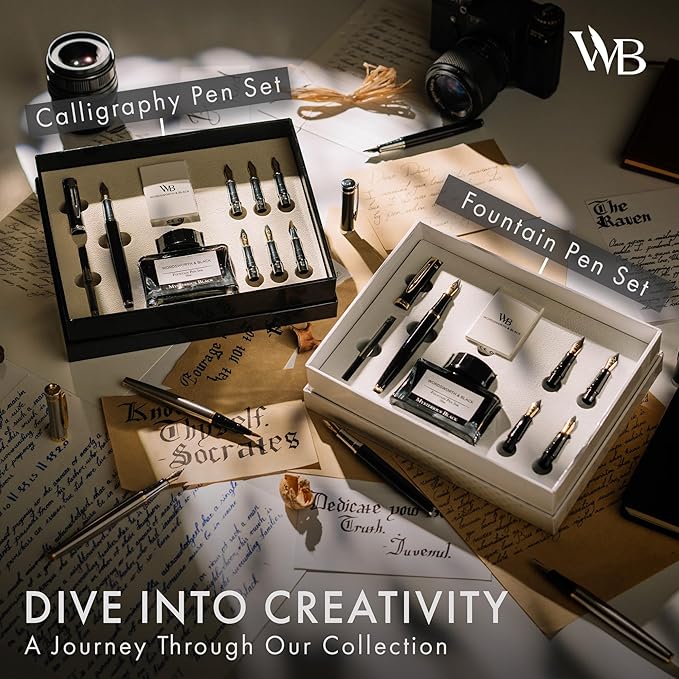 Wordsworth & Black Calligraphy Pen Gift Set, Includes Bottle, 6 Cartridges, Refill Converter, 6 Replacement Nibs, Premium Package, Journaling, Smooth Writing Pens [Silver Gold]