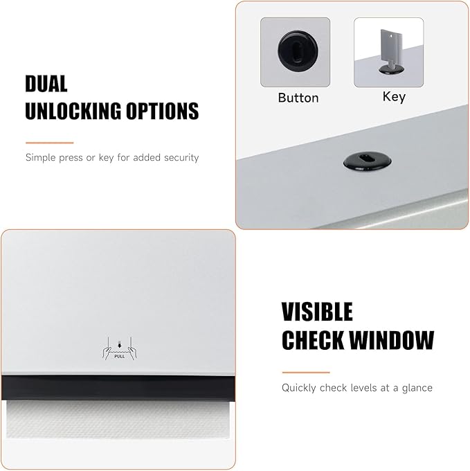 • 200-Sheet Capacity – Holds up to 200 multi-fold/tri-fold paper towels (within 3.1” width when folded), reducing refill frequency and saving time and effort