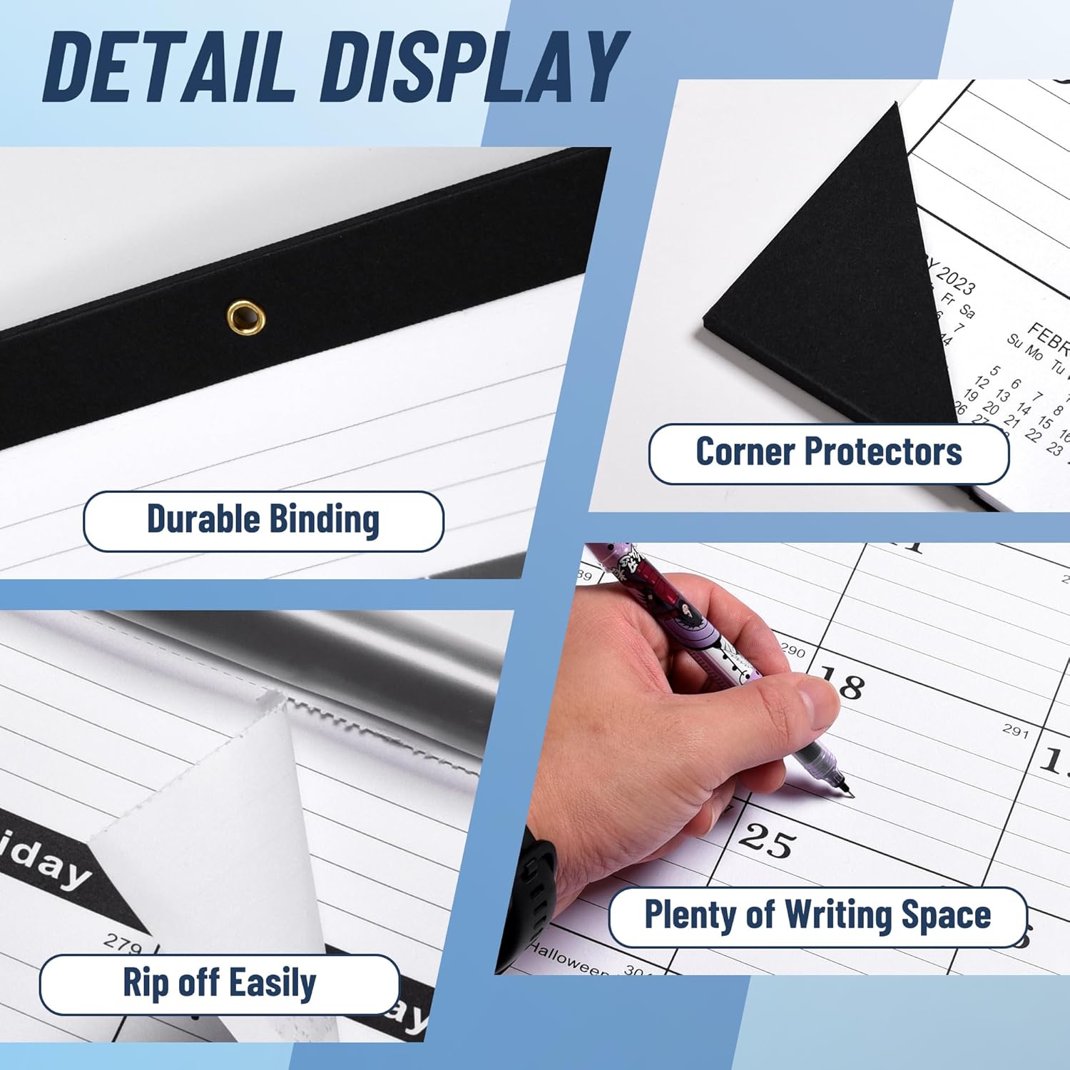 • 🎓CALENDARS--This large desk calendar 2025-2026 the first layer of PVC protective film can keep the large desk calendar 2025 clean and prevent the calendar from being damaged by overturned water or coffee.Classroom calendar are easy-to-tear cutting lines can be easily torn off.With two black protective corners on the bottom to prevent the big calendar from being damaged.