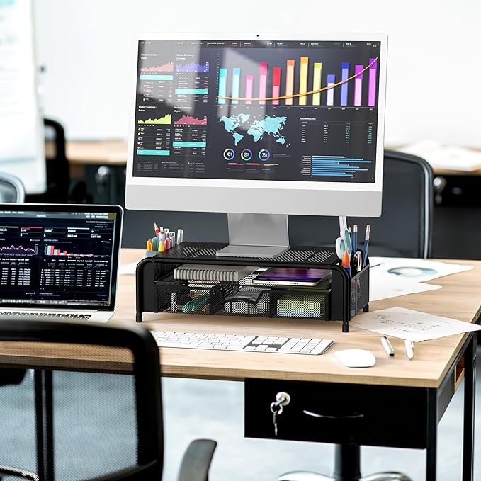 • 【 Space-Saving Design 】Keeps your workspace tidy and clutter-free while elevating your monitor to a comfortable viewing height.