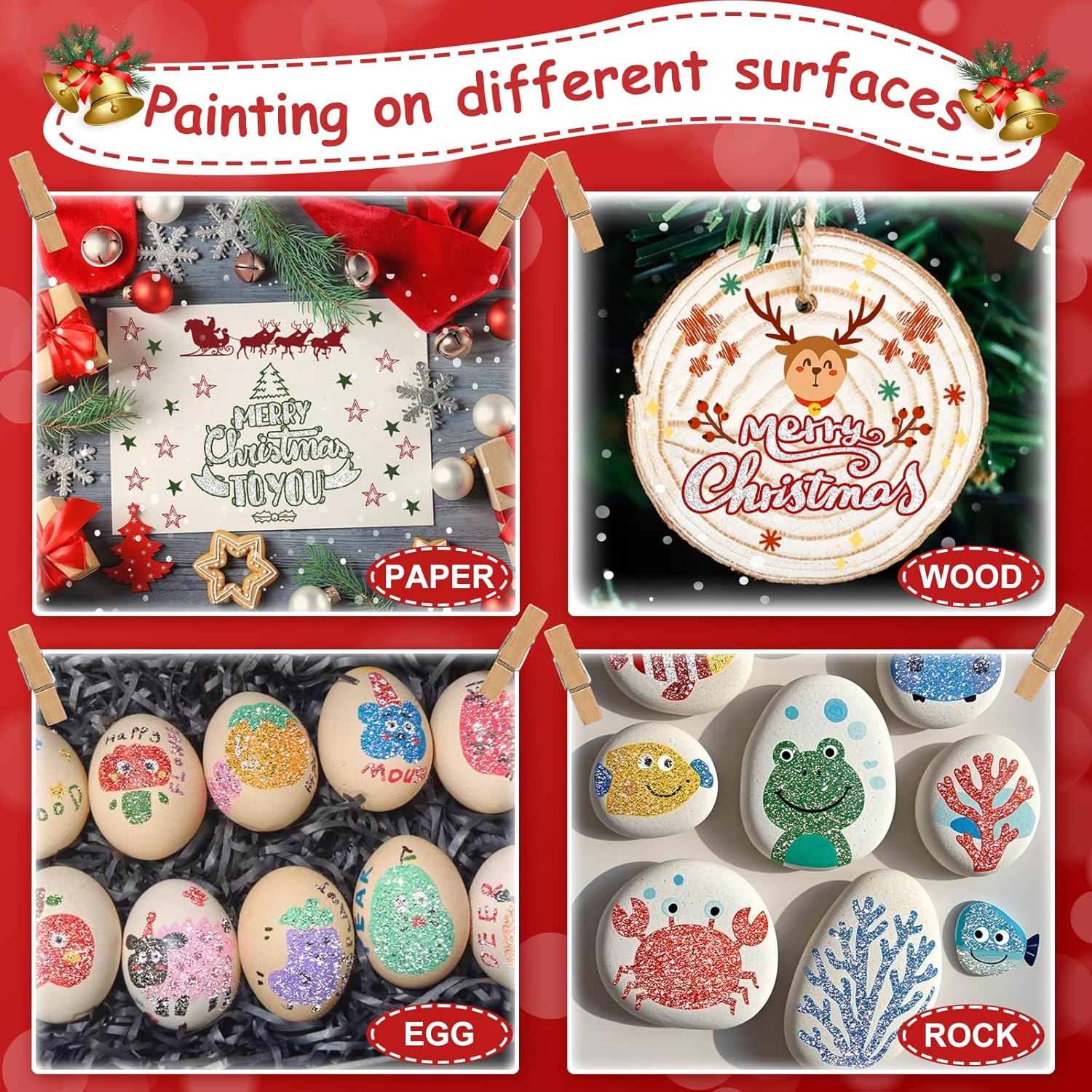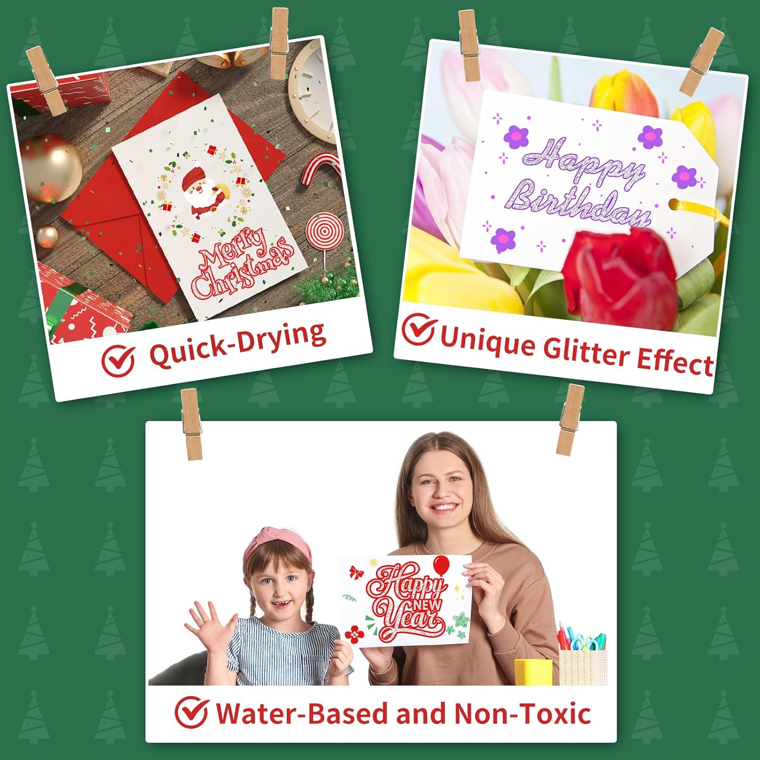 • ❤【Widely used】Glitter markers for kids can be used on many surfaces. such as rocks, wood, glass, paper, plastic etc. it's the best product for DIY crafts. You can use it to make Christmas decorations, New Year gift labels, diaries, birthday cards, and more. It can be used on various festivals.such as Christmas, New Year, Thanksgiving, gatherings, homecoming, etc