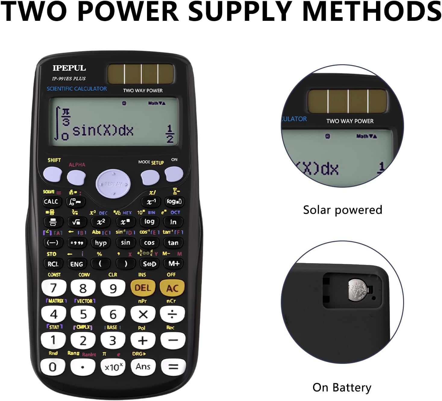 Scientific Calculators, IPepul Math Calculator with 417 Function, Solar Battery Power and 4-Lines Display, School Supplies for Middle High College Students Teachers (Black 991ES)