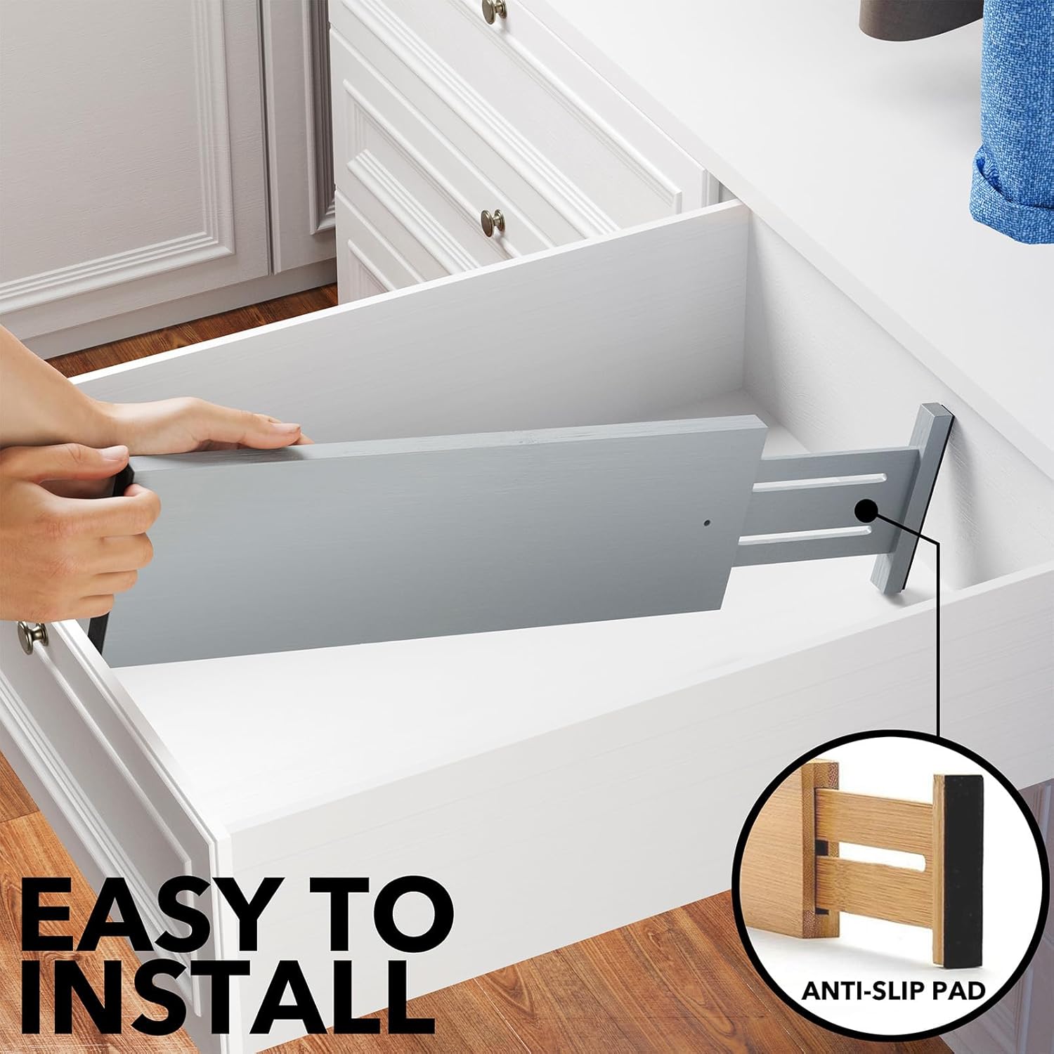 • Drawer Dividers That Stay in Place: Strong spring-loaded design makes them sturdy dividers, with non-slip rubber pads in the end, keeping it stay put all the time and protect your drawers from scratches