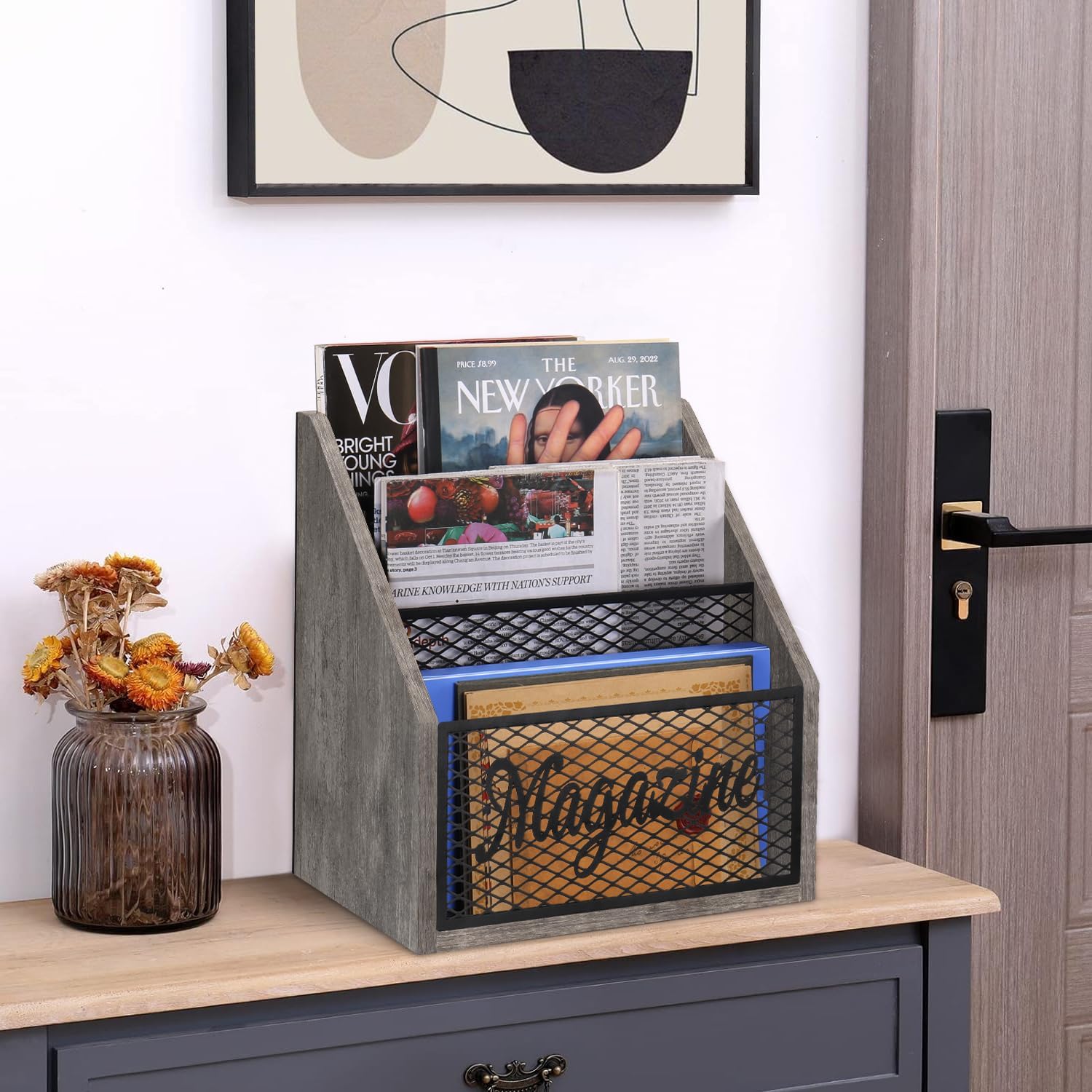 • Classic Durability: Gray wood boards add character,while high-quality metal mesh with a baked finish ensures lasting strength.The front panel with the "Magazine" font adds a stylish touch,fitting seamlessly into any decor, making it a captivating and enduring piece in your home decor.