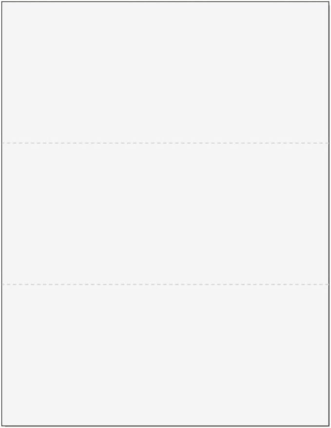 Limited Papers (TM) 8.5x11 Perforated Paper, 20/50 Pound, 75 GSM, Variety of Perforation Sizes and Colors, for Forms, Tickets, Postcards. (White, 3 up - horizontal 3 2/3" and 7 1/3" from bottom)