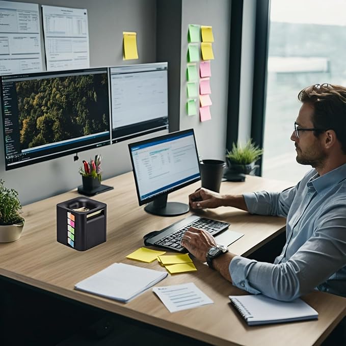 • 5-in-1 Design: The sticky note sticker holder adopts a 5-in-1 design, which integrates 4 types of note stickers and 1 magnetic absorber case. The fine teeth on the edges allow you to easily remove sticky notes from different directions; The magnetic design on the top securely attaches a paper clip or gadget, allowing you to work on your files on the go
