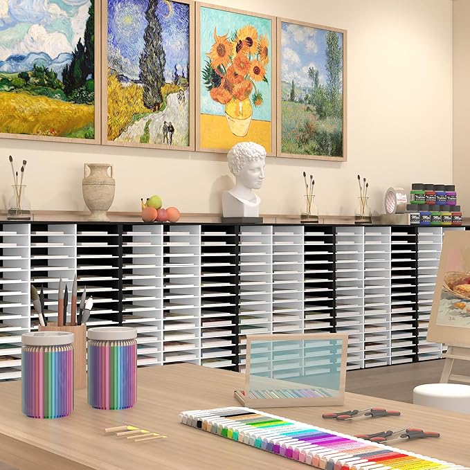 • 48-Compartment Mail Sorter Organizer: Organize 500+ sheets per slot in this industrial-grade classroom mailbox. With 48 compartments (12 x 9 x 2.1 inch eash slots), store comics, magazines, and travel brochures effortlessly. EPA-certified particleboard ensures long-term durability for office/classroom use.