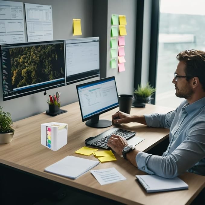 • 5-in-1 Design: The sticky note sticker holder adopts a 5-in-1 design, which integrates 4 types of note stickers and 1 magnetic absorber case. The fine teeth on the edges allow you to easily remove sticky notes from different directions; The magnetic design on the top securely attaches a paper clip or gadget, allowing you to work on your files on the go