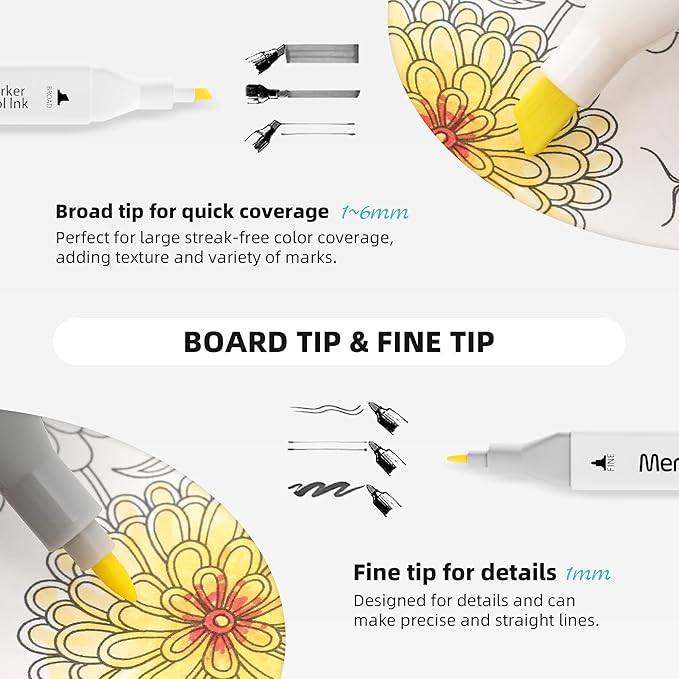 • UNLEASH YOUR CREATIVITY - The MemOffice alcohol based marking ink come with dual tips, allowing you to create versatile styles, sketches, and patterns with ease. Broad and fine twin tips are designed for precise highlighting, underlining, or quick coloring in large areas