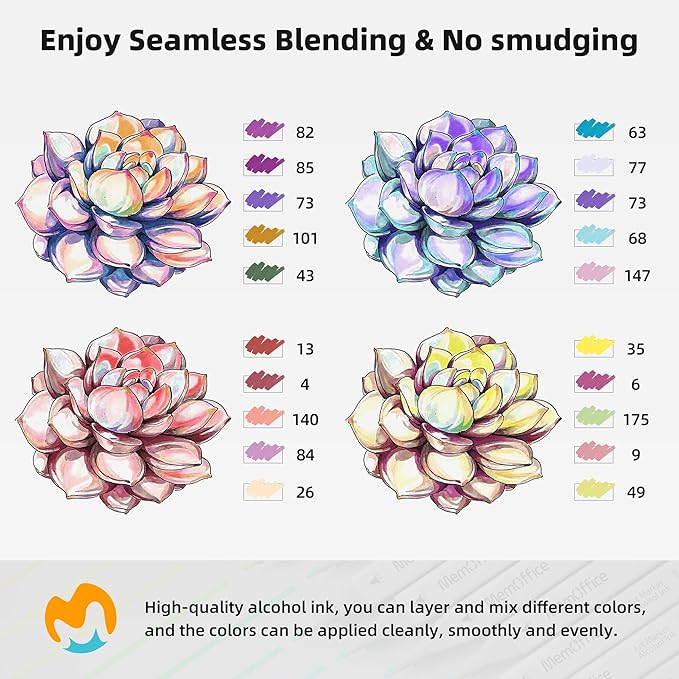 • PREMIUM QUALITY - Made from sustainable materials, these alcohol-based markers dry quickly and are smudge-free. Layer and mix different colors without worrying about smudging or blotches. Expand your artistic horizons with our high-quality alcohol marking ink