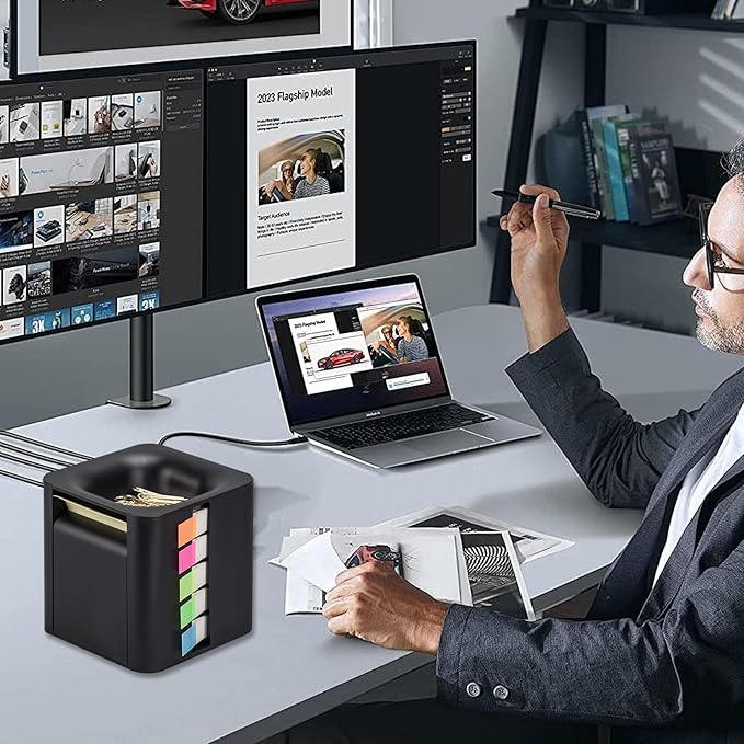 • Handy booster pack: This 5-in-1 sticky note box refills consumables, including colorful index stickers and a self-adhesive sticky note roll, making it easy to fill the sticky note holder on your desk