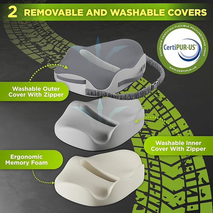 • ๐Ÿงตใ€๐“๐จ๐ฎ๐ ๐ก ๐„๐ง๐จ๐ฎ๐ ๐ก ๐Ÿ๐จ๐ซ ๐‹๐จ๐ง๐  ๐’๐ญ๐ซ๐ž๐ญ๐œ๐ก๐ž๐ฌใ€‘- Truck driver seat cushion includes 2 removable & washable covers, non-skid base, and adjustable straps for a secure fit. Crafted to withstand wear & tear of long hauls.