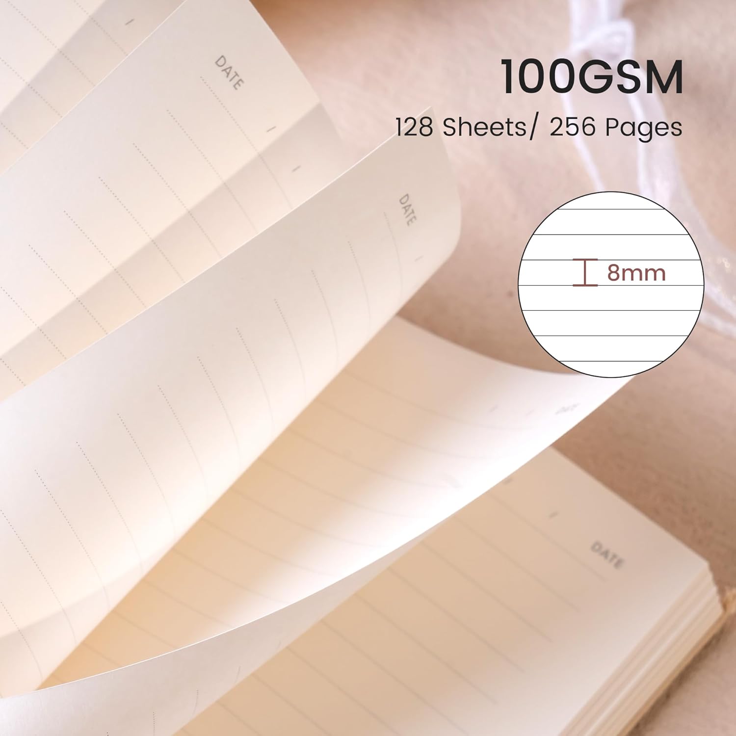 CAGIE Lined Journal Notebook for Women Girls, A5 Hardcover Linen Journals For Writing 256 Pages, Aesthetic Womens Diary, Gifts 8.3'' x 5.7'' Beige