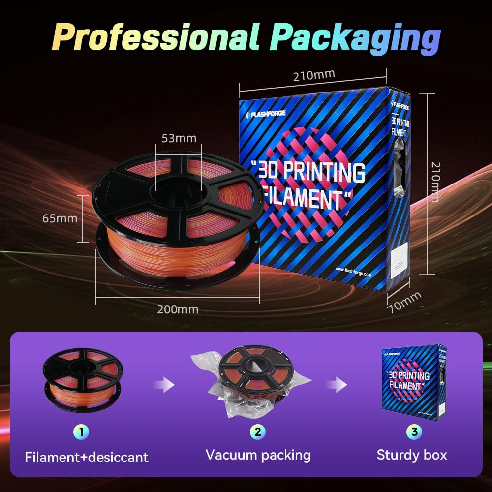 • 【Breathtaking Color Change Effects】FLASHFORGE HS PLA Multicolor filament combines fast printing with color variations that change when viewed from different angles and light, giving your prints a distinct visual appeal. Making it ideal for artistic projects and custom designs.