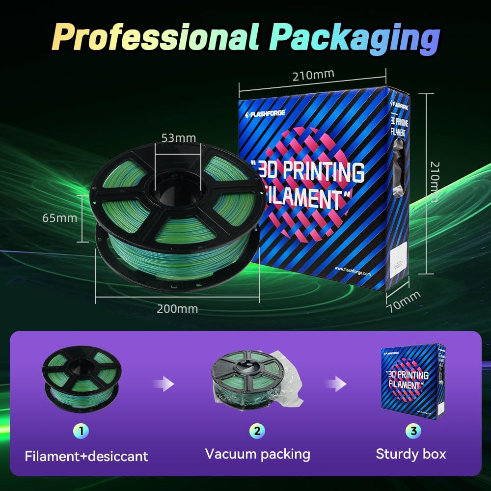 • 【Breathtaking Color Change Effects】FLASHFORGE HS PLA Multicolor filament combines fast printing with color variations that change when viewed from different angles and light, giving your prints a distinct visual appeal. Making it ideal for artistic projects and custom designs.