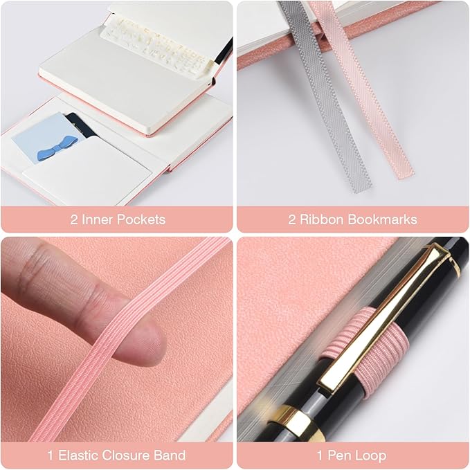 • 【Thoughtful Accessories】Complete with practical accessories, each blank page journal includes 2 pockets, 2 bookmark ribbons, 1 elastic band, and 1 pen loop. These additions are designed to enhance your journaling experience and keep your essentials organized.
