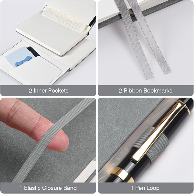 • 【Thoughtful Accessories】Complete with practical accessories, each blank page journal includes 2 pockets, 2 bookmark ribbons, 1 elastic band, and 1 pen loop. These additions are designed to enhance your journaling experience and keep your essentials organized.