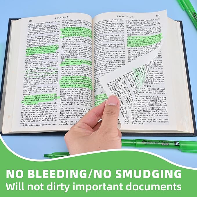 • TRANSPARENT INK: The translucent ink of this green highlighter set allows you to emphasize key points clearly without obscuring the text, that remain readable and no-bleed.