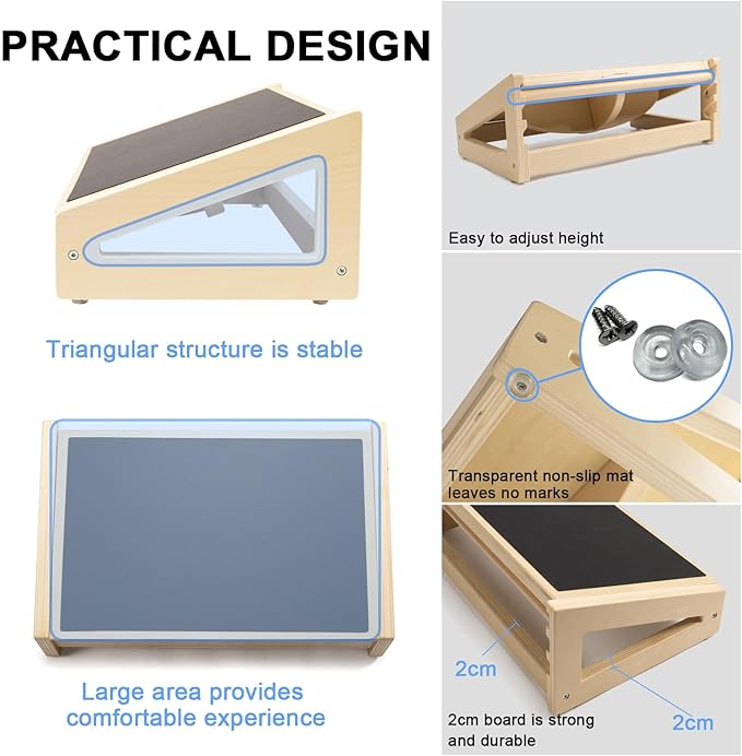 • 3-in-1: It serves as a calf stretcher and a cross-shaped balance board. It provides a stretching platform for people with plantar fasciitis, Achilles tendonitis, calf muscle strain, and hip bursitis to improve blood circulation. When used as a cross-shaped balance board, it can perform advanced balance training such as push-ups, squats, and plank exercises to enhance core strength and coordination.