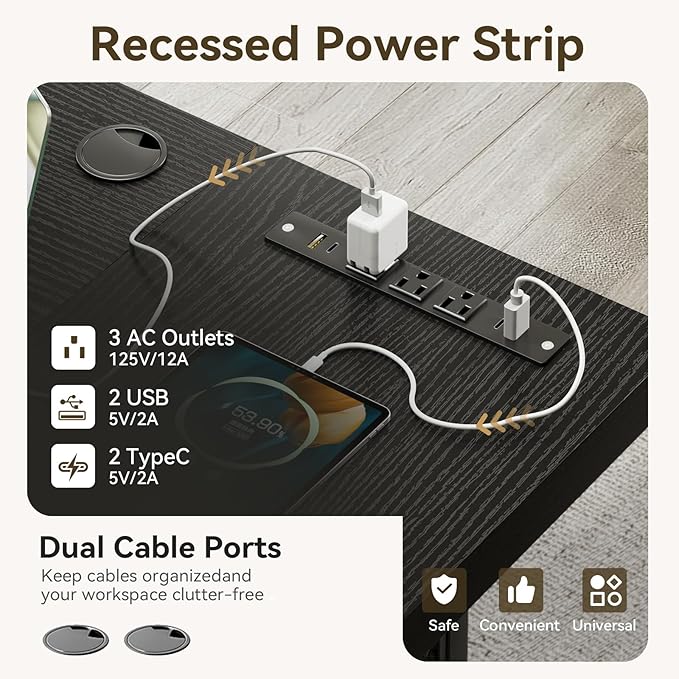 • 【Powerful Desk with Charging Ports】Upgrade your home office or study area with the Coleshome large desk. Featuring 3 power outlets, 2 USB charging ports, and 2 Type-C charging ports, this office desk keeps your devices powered and ready. Say goodbye to tangled cords and limited outlets. Perfect for a modern desk, computer workstation, or executive desk.