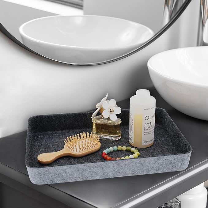 • 【Package content】 2 piece set Desk drawer organizer trays for papers documental files, 2 tones colors drawer organizer bins, inner high premium charcoal, outer gray felt, more economical and affordable for home office dorm storage and organization