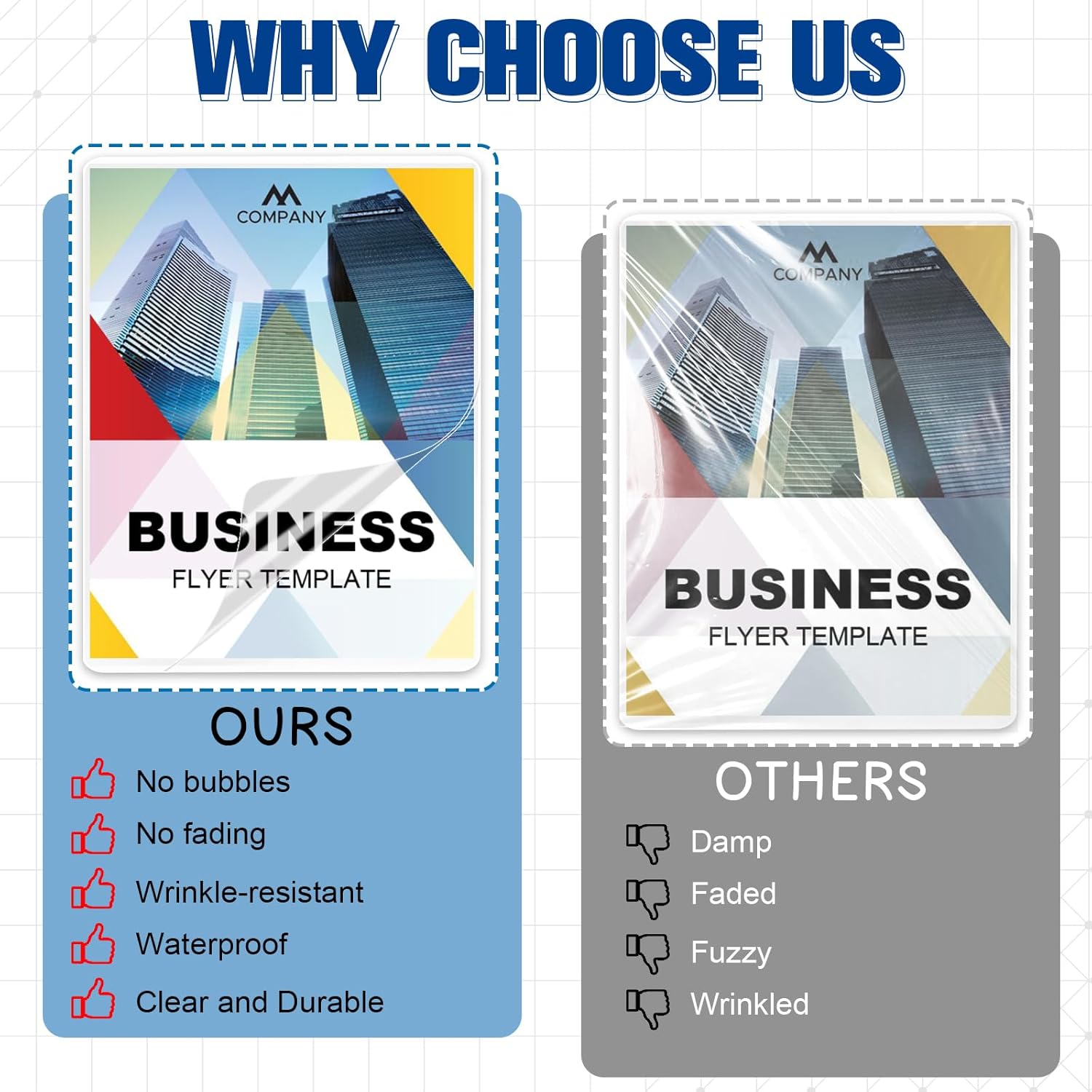 • Durable Material:These photo laminating sheets are made from premium materials,Crafted to withstand high temperatures and resist liquid penetration, stain-resistant, and water-resistant, more effectively protect your business cards.The laminating pouch with sealing temperature is recommended to be 257°F-266°F.these thermal laminate pouch guarantee that your items remain safe and intact, making them an excellent choice for both professional and personal use.