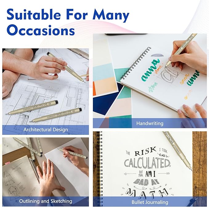 • 【Service Guarantee】Designed especially for beginners in painting, sketching, writing, drawing, lettering, illustration, scrapbooking, and bullet journaling, this set of 6 micro-line pens promises an exceptional creative experience. Our top priority is customer satisfaction. In the unlikely event of the fineliner ink pens encountering issues such as inoperability, damage, or leakage, you can confidently request a refund or replacement.