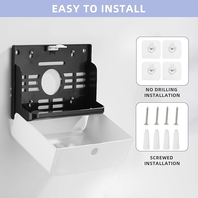 • NO DRILLED INSTALLATION: This paper towel holder wall mount comes with screws and nail free sticker, supports drilling or sticker installation.You can mount it on the wall using the included non-marking sticker, no damaging the wall and easy to install, suitable for most smooth walls.