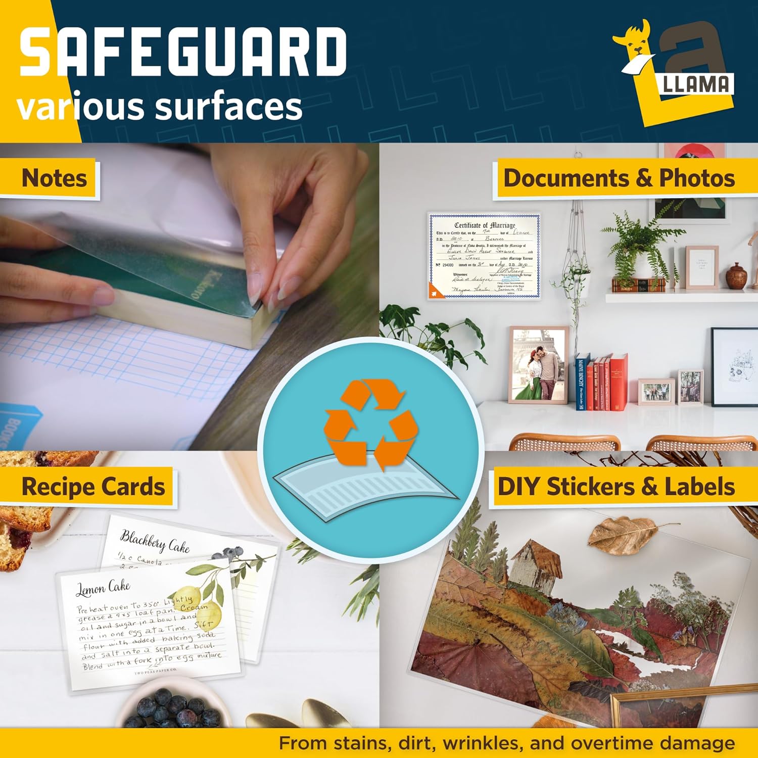 • 🦙User-Friendly and Versatile: Designed for ease, this durable laminating film roll 3 mil effortlessly, ensuring smooth, bubble-free application. Use it as clear contact paper for crafts, removable contact paper, or for protecting documents, photos, and other creative projects. Don`t forget about the BONUSES INCLUDED. Among with clear laminating roll you get foldable scissors and scraper.