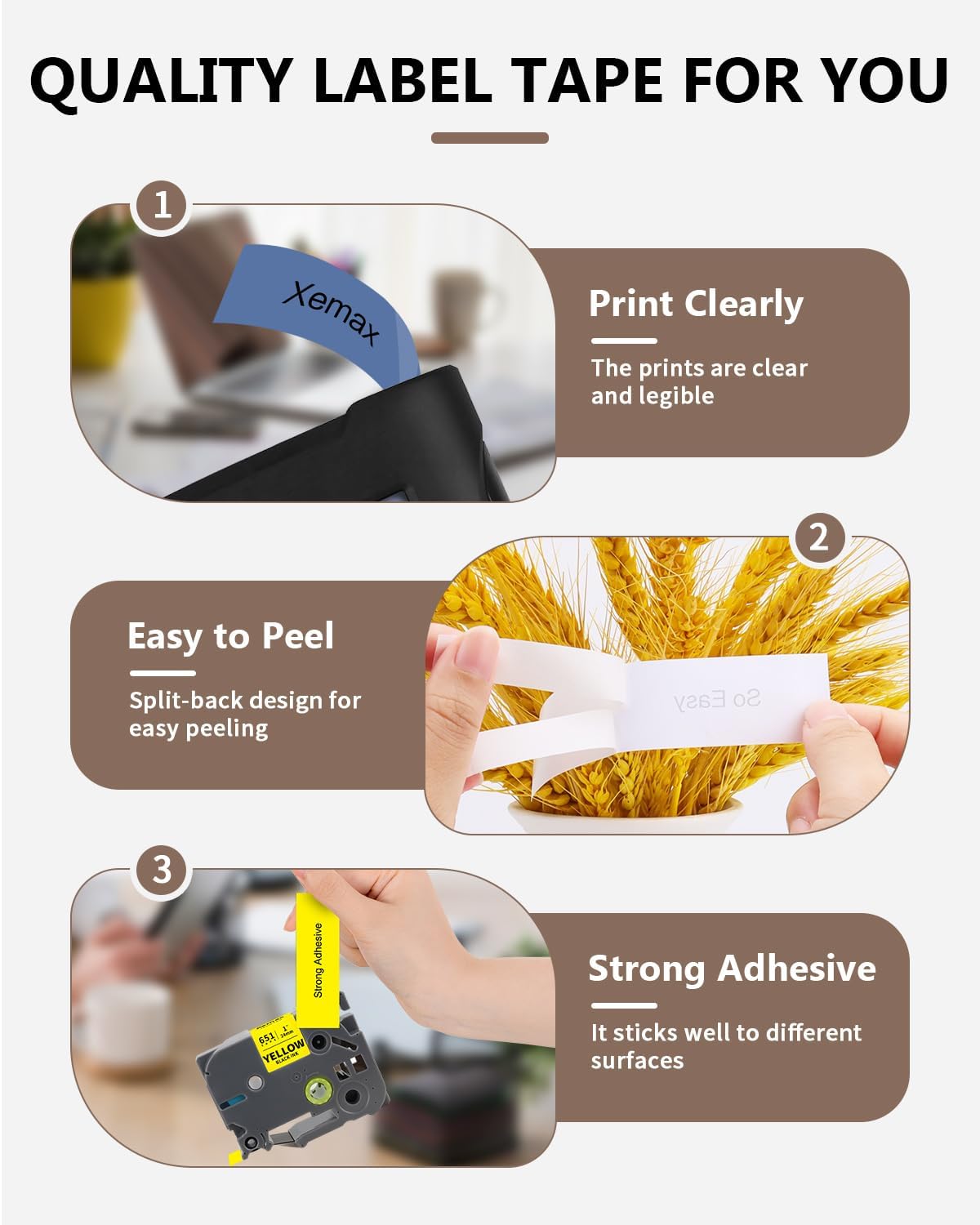 • Package Include: 6-Pack Multi-Color Tze 24mm 0.94" Label Tape for Brother Label Tape Tze-151 Tze-251 Tze-451 Tze-551 Tze-651 Tze-751 (Black on Clear/White/Red/Blue/Yellow/Green)