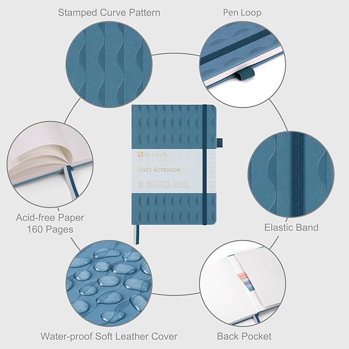 • 160 PAGES LINED NOTEBOOK: 80 sheets/160 lined pages provide ample space for writing. The A5 size (5.7'' × 8'') makes this notebook the perfect travel companion.