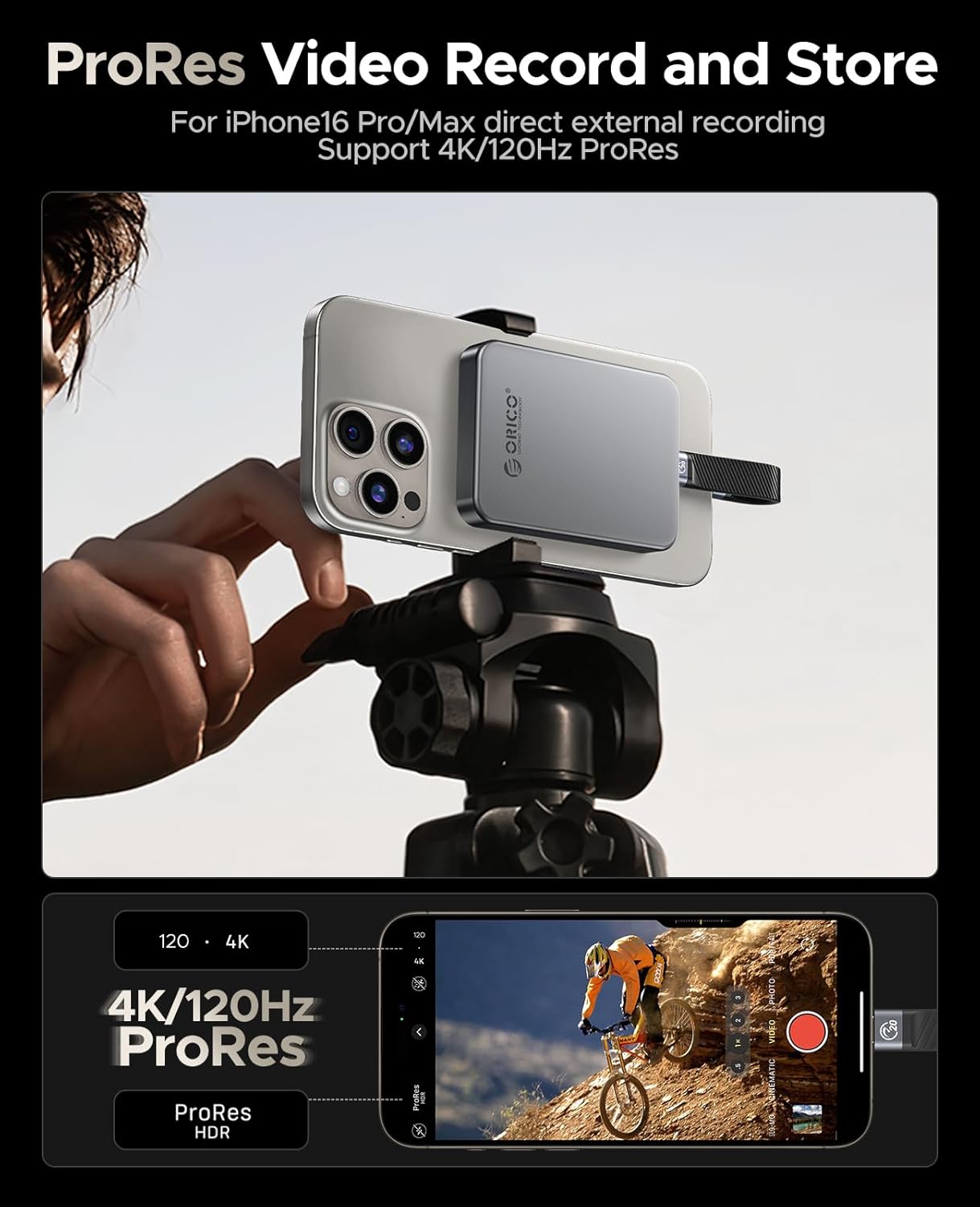 • 4K 120 fps ProRes: ORICO K20 external solid state drives supports 4K 120 fps ProRes HDR video recording of iPhone 16 Pro/Pro Max. Save as you record, edit on disk, no need for a second transfer