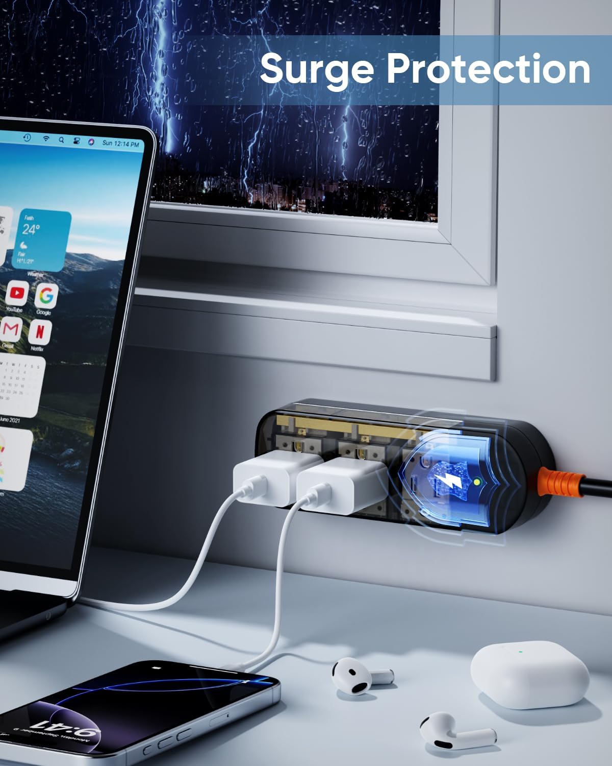 • 【Power Strip with 3 AC Outlets】Unveil the potential of this power strip, boasting 3 well-spaced AC outlets. Power up to 3 devices simultaneously. AC outlets provide a substantial output of 1875W/15A each.