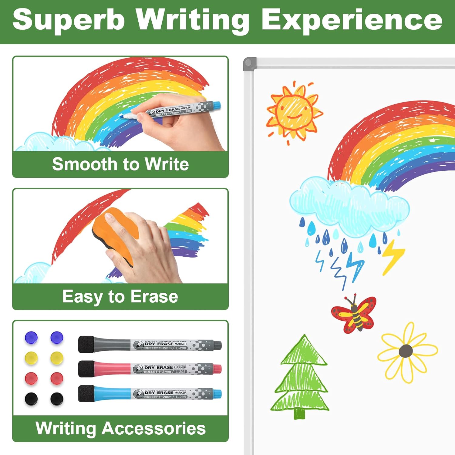 • Comfortable to write: Smooth magnetic surface, smooth writing without jams, easy to wipe. Writing accessories include three markers and eight magnets, bring you great writing experience.