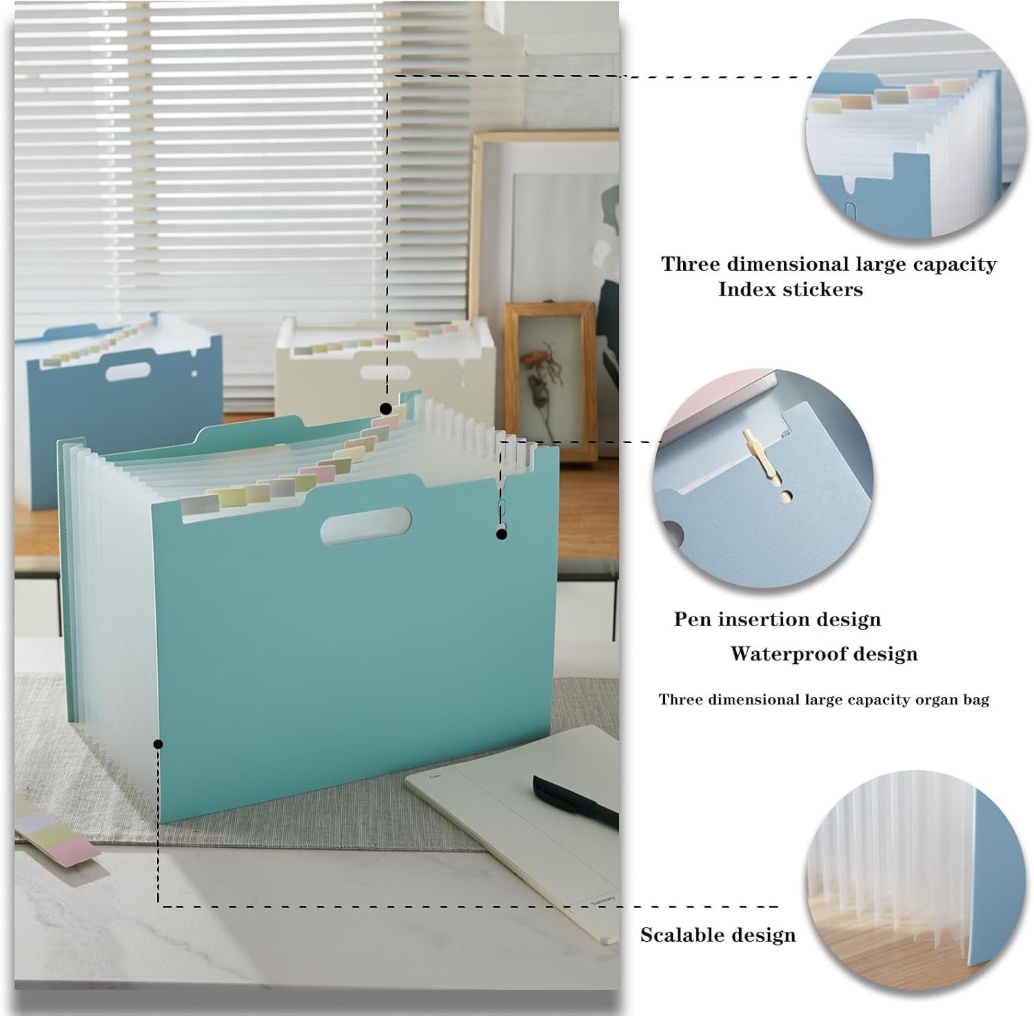 • Large capacity and space saving 12 pockets, full-size expansion top and bottom, flexible file expansion and reduction according to needs, foldable design, easy to carry