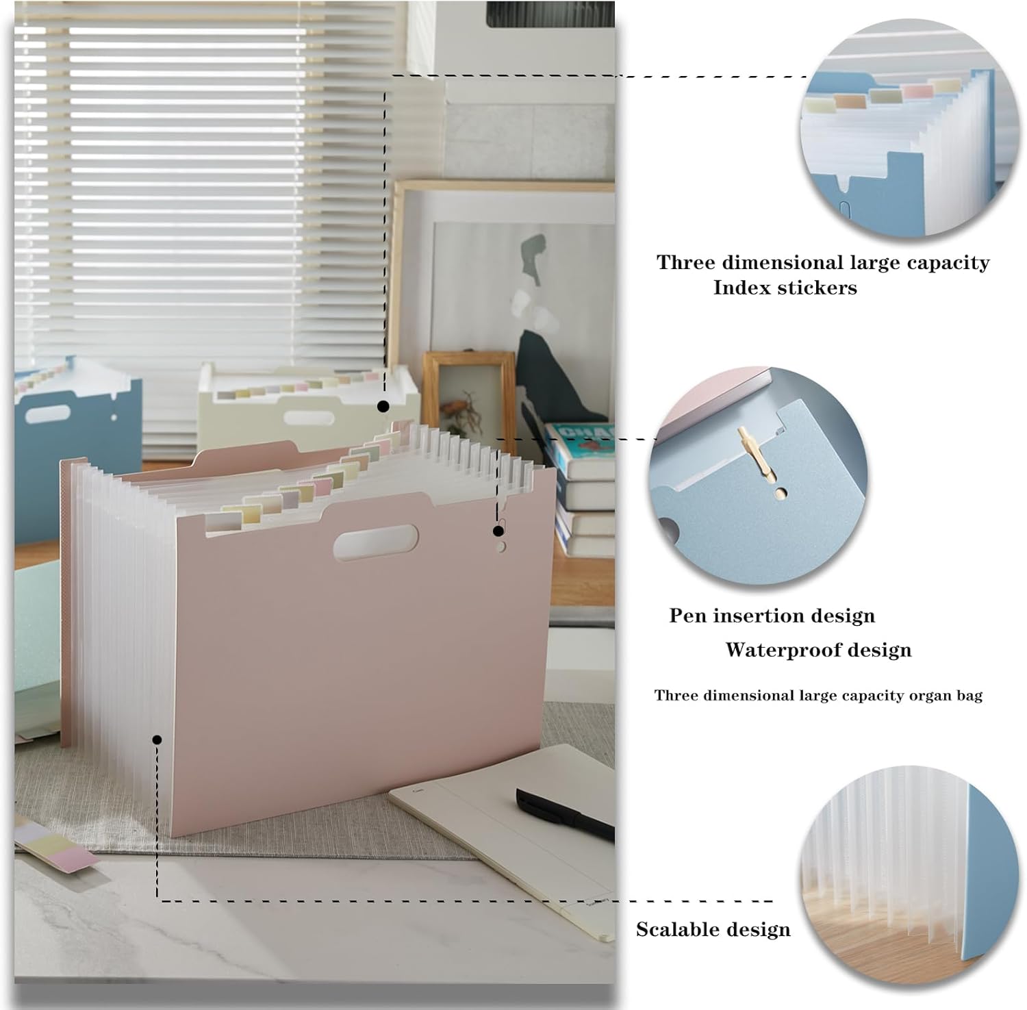 • Large capacity and space saving 12 pockets, full-size expansion top and bottom, flexible file expansion and reduction according to needs, foldable design, easy to carry