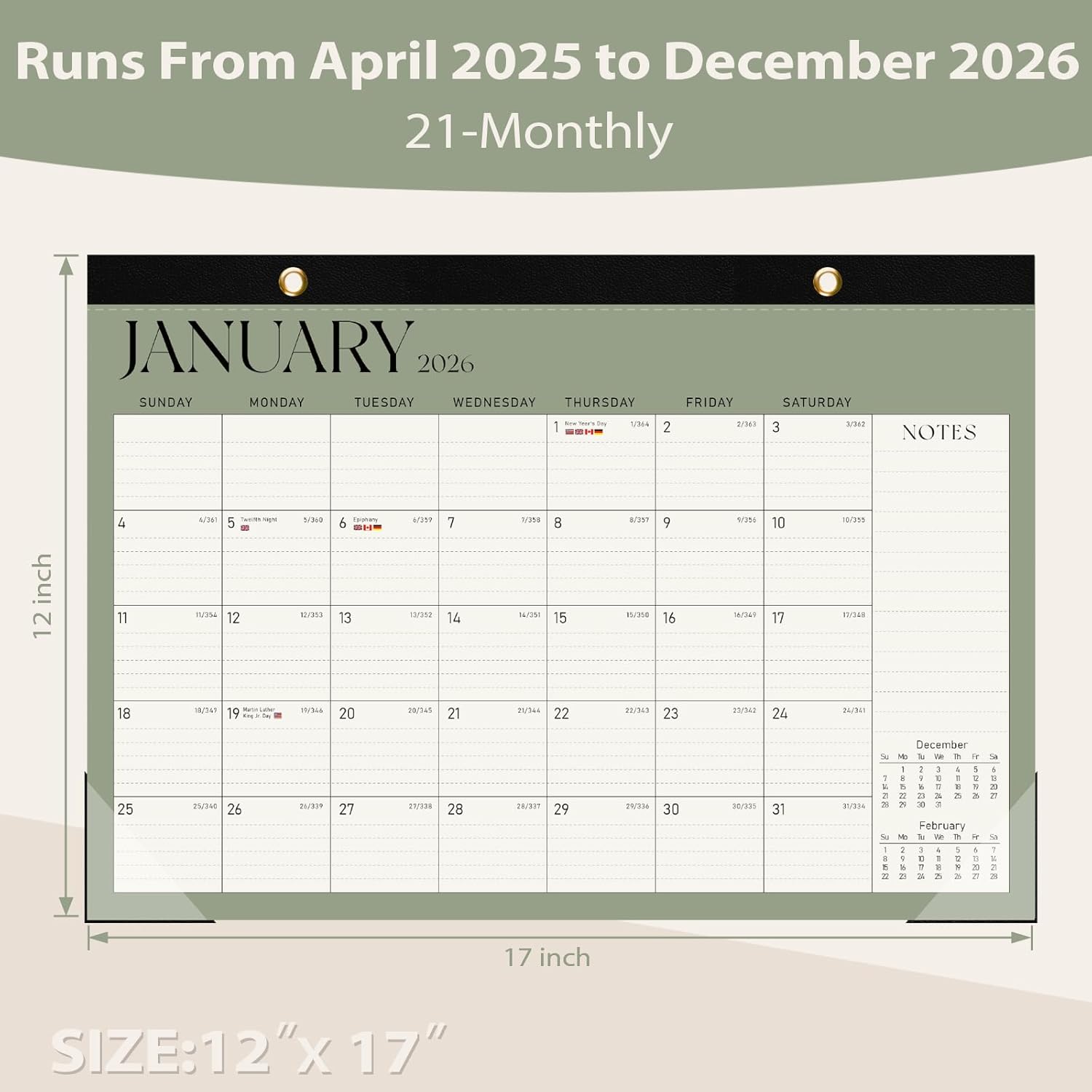 • [PERFECTLY SIZED FOR PLANNING] – Measuring 17" x 12", the 2025-2026 desk calendar offers ample space for notes, appointments, and reminders while fitting neatly on your desk or wall. A dedicated notes section helps keep memos, goals, and to-do lists organized in one place.