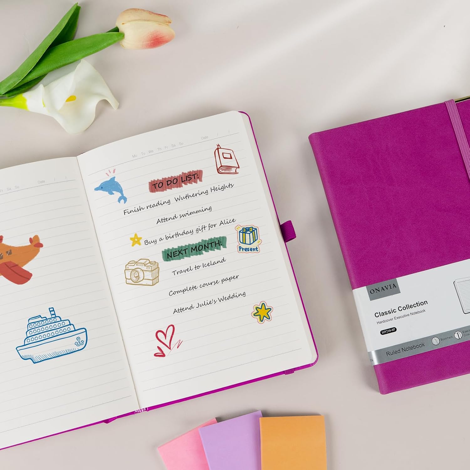 • Hardcover Journal Notebook: ONAVIA a5 journaling notebook features a durable and water-resistant faux leather cover, and 80 sheets/160 pages high-density hard thick paper. The exquisite golden corner design not only protects the edges of the lined notebook from damage caused by external impacts but also enhances its aesthetic appeal and lends an air of sophistication