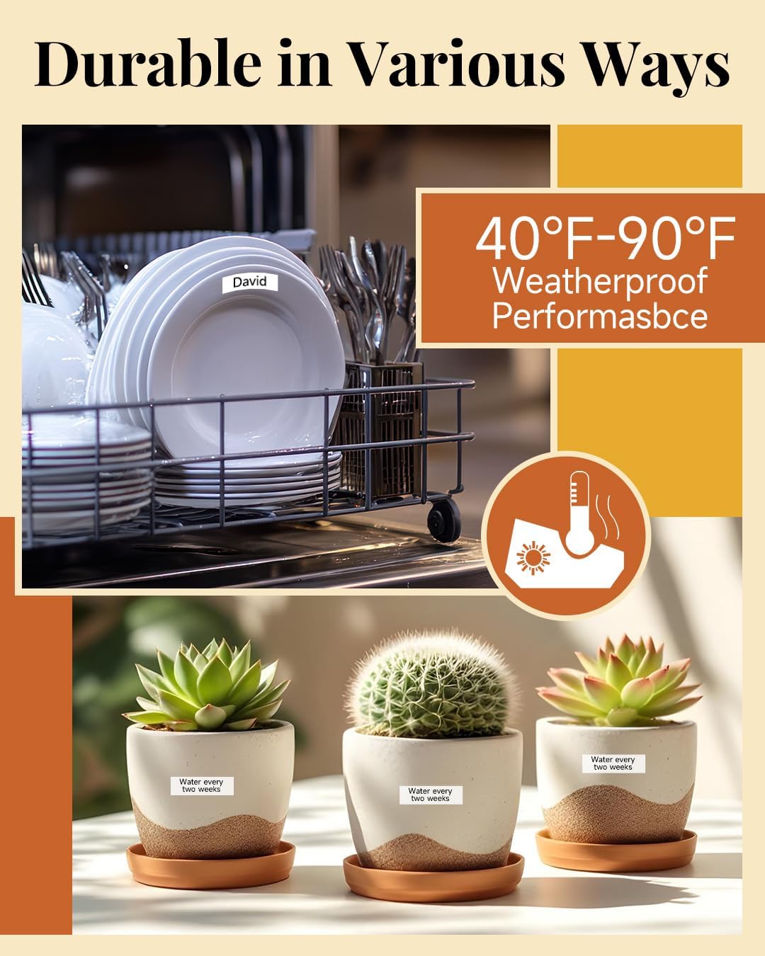 • Various, long-lasting labels: The A30 bluetooth label printer makes pre-cut or continuous labels, patterned labels, refrigerator magnetic labels, colored font labels, ribbons, fabric iron-on labels, premium glitter labels, hot stamping labels, luminous labels and so much more. This is an all-in-on printing solution for everyday or special occasions. No fading and just clear, durable prints that stand up to water splash, high and low temperatures