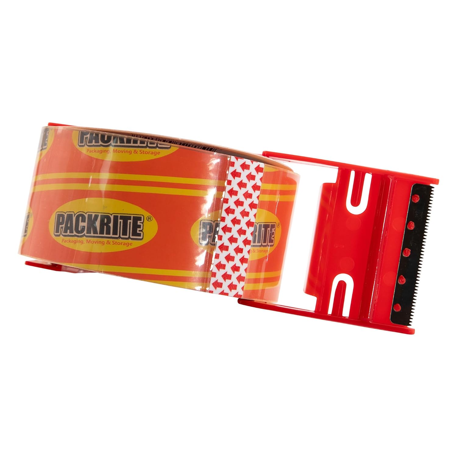 • DISPENSER INCLUDED - Each roll comes loaded on it own handy tape dispenser equipped with a serrated cutter allowing for one handed operation. Great for warehouses and large moving jobs where everyone gets their own roll and dispenser. No more wated time reloading a tape gun.