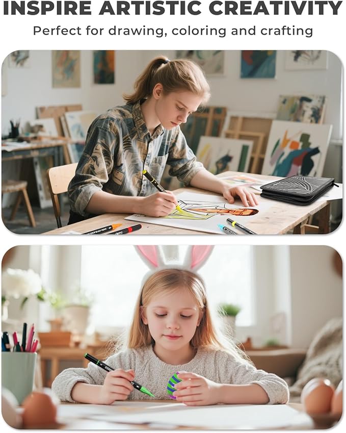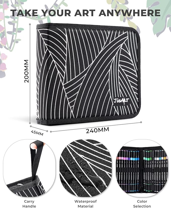 • Portable Art Bag Design: Keep your markers organized with the high-quality, waterproof, and uniquely designed expandable art bag. It ensures that each marker color is clearly visible and easy to access, preventing loss. With a zipper and handle strap for easy grip and portability, it’s perfect for adults, making it an essential art supplies