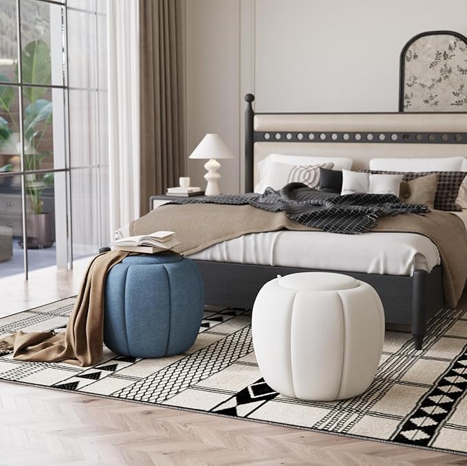 • 【Chic Design】 This Ottoman stool has a uniquely beautiful appearance, somewhat resembling a pumpkin. It also serves as a lovely decorative piece that makes your room more beautiful and unique. This makeup stool is made of a soft and comfortable material. Whether used as a footrest or a vanity stool, this stool provides maximum comfort.