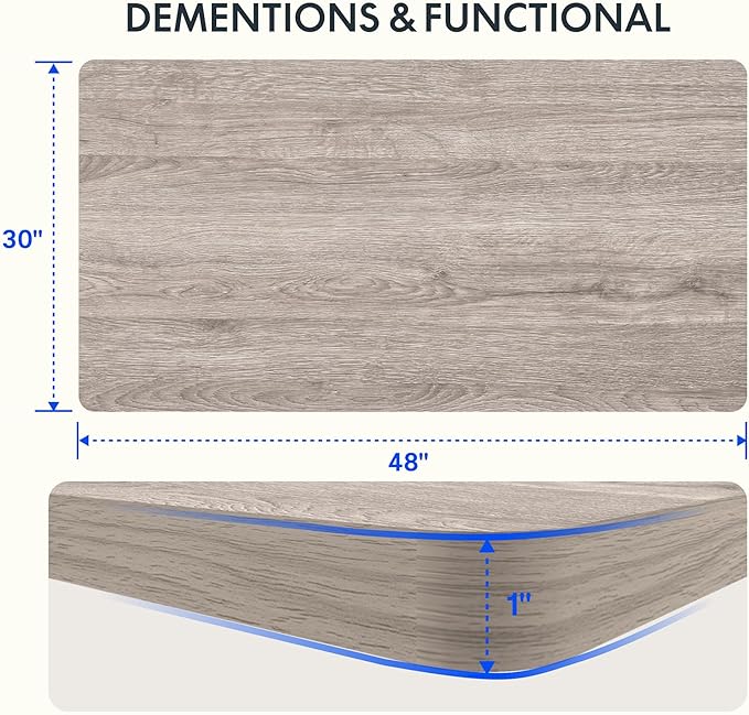 • AMPLE WHOLE-PIECE DESKTOP: With its whole-piece 1” eco-friendly desktop, this standing desk provides plenty of room for your computer setup, documents, and accessories, creating a well-organized and productive work environment. Due to hand measurements, desktop dimensions may vary slightly by 0 to 1”.