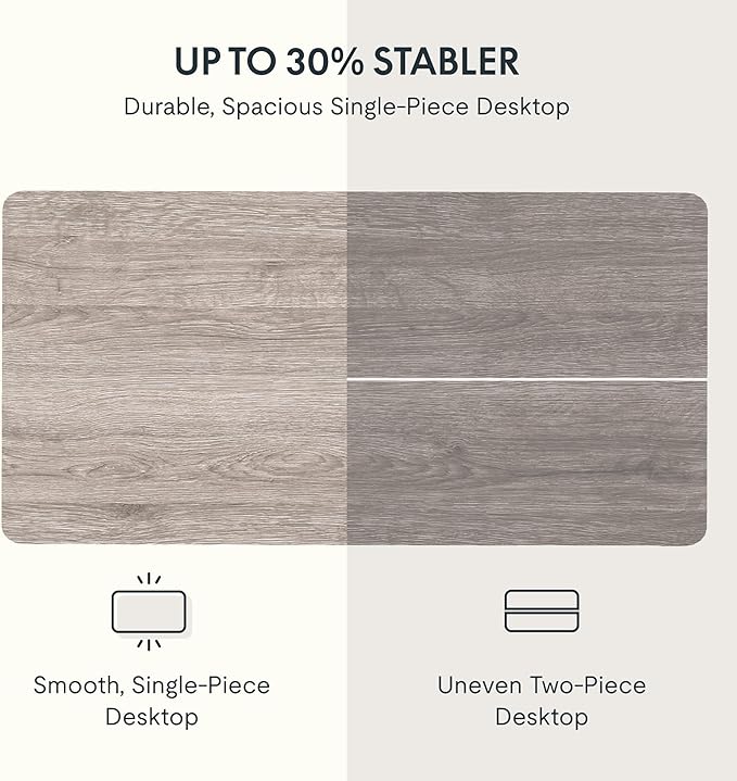• AMPLE WHOLE-PIECE DESKTOP: With its whole-piece 1” eco-friendly desktop, this standing desk provides plenty of room for your computer setup, documents, and accessories, creating a well-organized and productive work environment. Due to hand measurements, desktop dimensions may vary slightly by 0 to 1”.